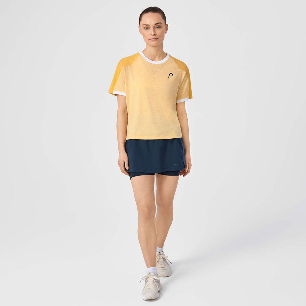 Mit dem PLAY TECH T-SHIRT für Damen aus 100 % Polyester Single Jersey mit speziellem Melange-Effekt bringen Sie frischen, sportlichen Stil auf den Platz. Damit Sie immer schön kühl bleiben, verfügt dieses locker geschnittene Poloshirt über eine leistungsstarke Feuchtigkeitsübertragung durch Mikrofasertechnologie, die einen kühlenden und schnelltrocknenden Effekt bietet. Geschlossene Mesh-Einsätze an den Schultern verbessern Atmungsaktivität und Komfort. Der Rundhalsausschnitt und die gerippten Ärmelabschlüsse unterstreichen den modernen, sportlichen und hochwertigen Look des PLAY TECH T-SHIRT, das mit einem HEAD Branding und dem unverkennbaren Wishbone Logo versehen ist. • 100 % Polyester Single Jersey Melange mit Wicking• Loose Fit• Rundhalsausschnitt• Geschlossene Mesh-Einsätze an den Schultern• Rippstrick an der Ärmelöffnung • Feuchtigkeitsübertragung durch Mikrofasertechnologie